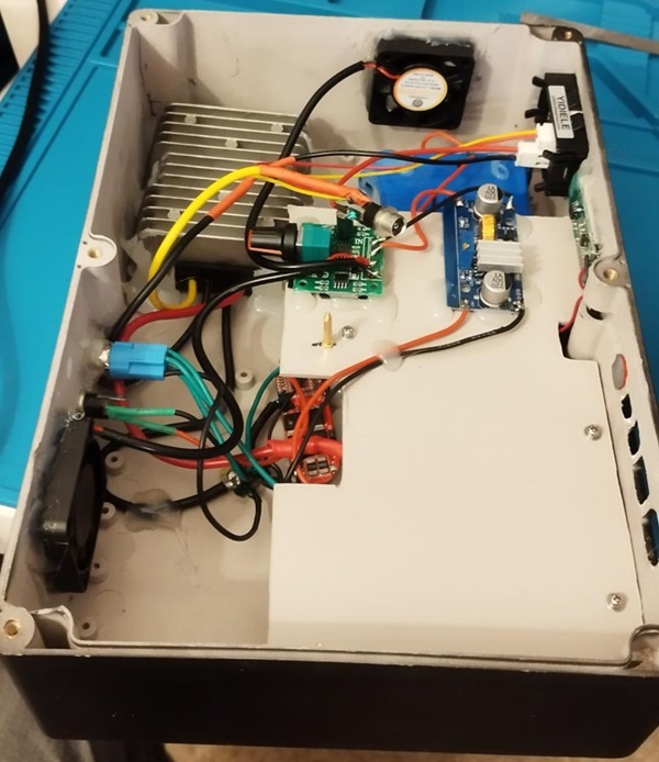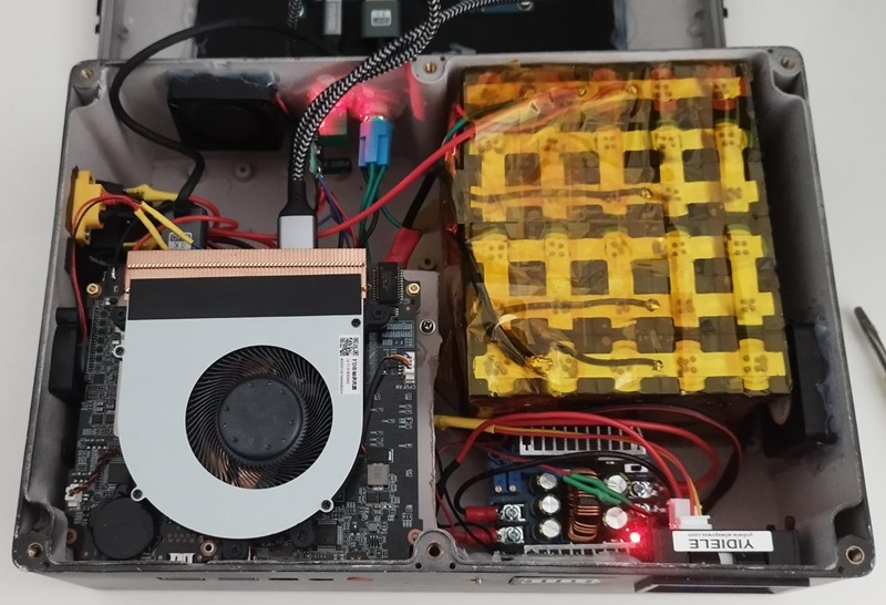 J'ai baissé la conso à 18.6v au lieu de 19v et le mini PC est OK ! Le step down devrait donc déconner vers 18.8 à 19v ce qui n'est pas grave car il faut charger vers max 80% et mini 30% pour la longévité de la batterie bref 3.1v / pile