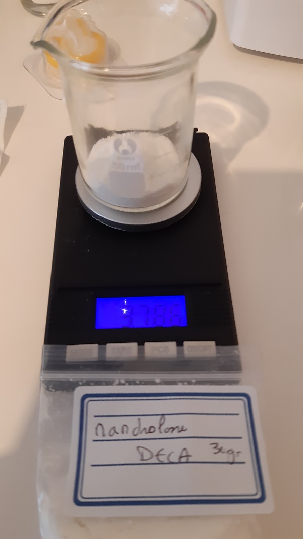 Etape 2: on pèse la raw de deca sur approximativement 3784mg