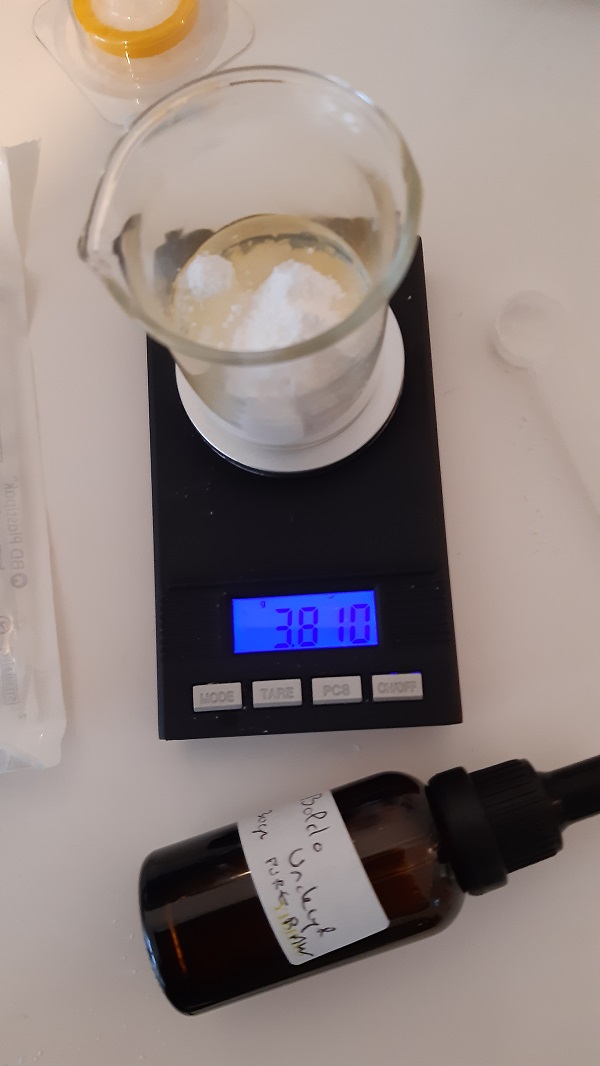 Etape 4: on pèse la raw liquide de Boldo U sur approximativement 3808mg