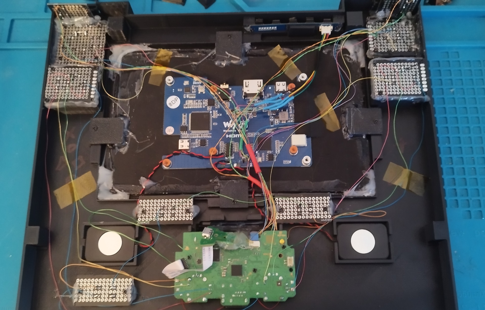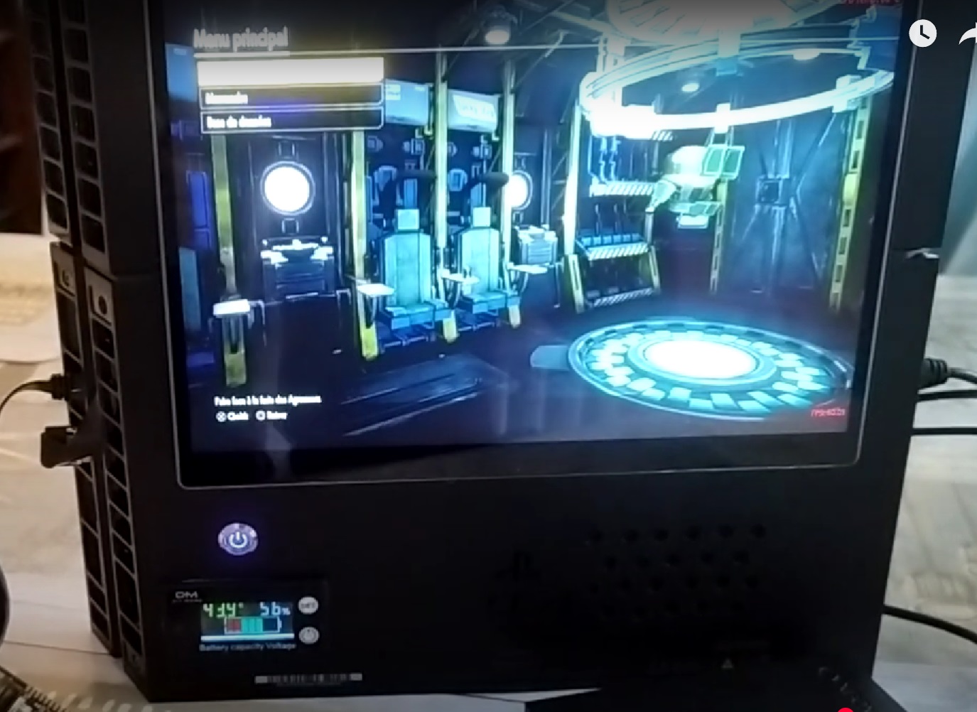 My first attempt was a PS4 FAT Portable with a seperate gamepad. It was just a PS4 on Lithium batteries with a screen. But 12V with 13A gave just one hour of gameplay with a 3S4P of 18650 (3500 mah each cell) so i really prefered to play it with a power input. Here is a photo: