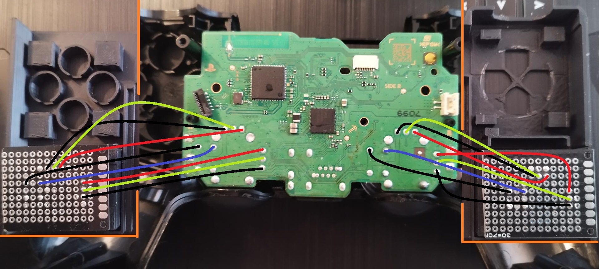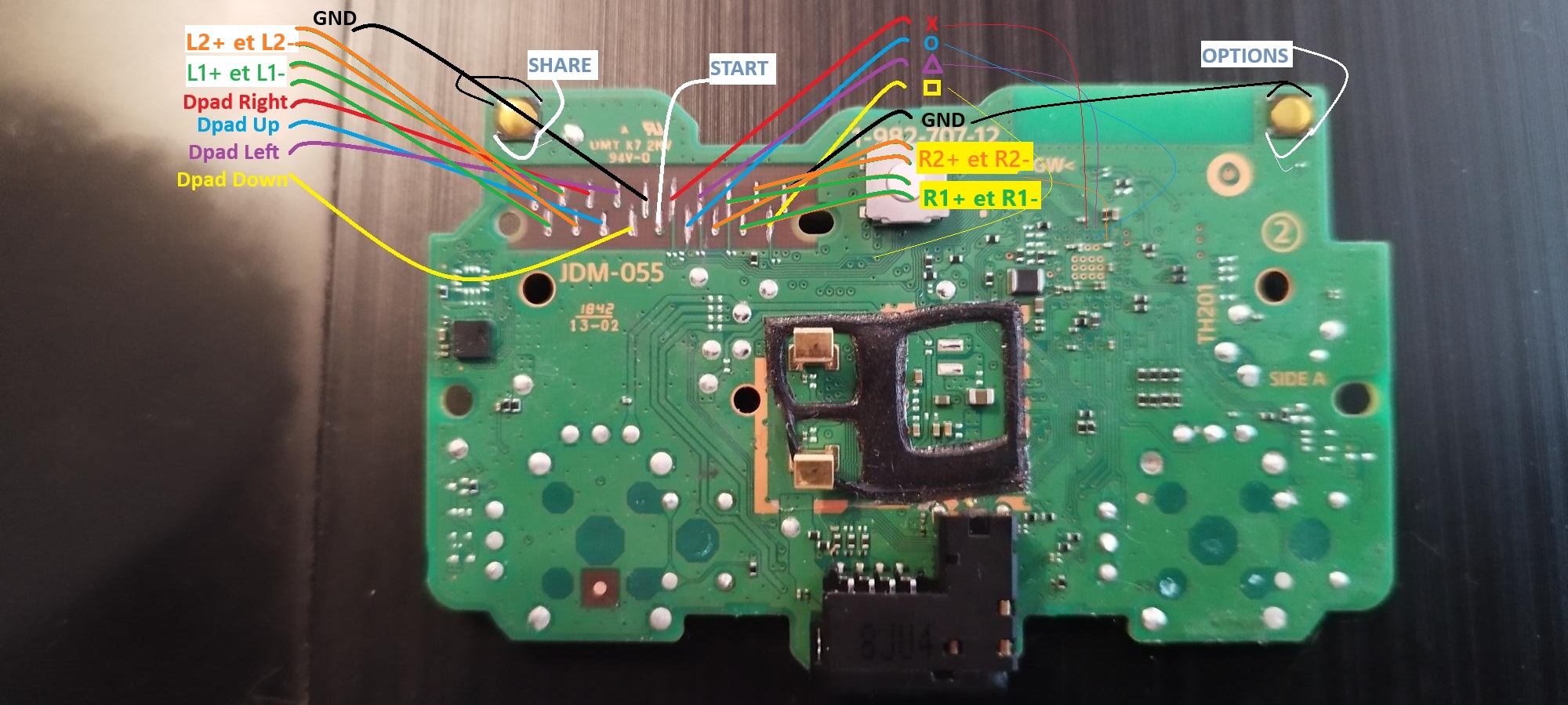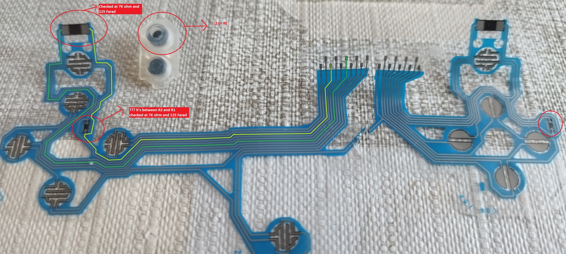 But... I connect the new wired gamepad to a PS4 and even a Windows PC and I realise that i have a problem with L2 and R2 ! L2 and R2 is doing like a rapid fire alltime !!! When I check an official gamepad i realise that the contact are strange for L2 and R2 When i check with a multimeter, it's like the points are connected even if you don't press the button with some kind of a resistor (7K ohm)