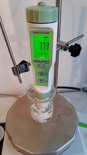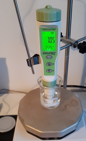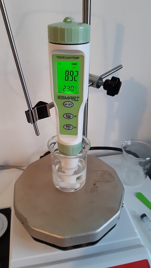 Etape 5: on ajoute 15mg de NAC et on met en mélange fortement pendant 1mn puis on lit avec le Ph Metre: