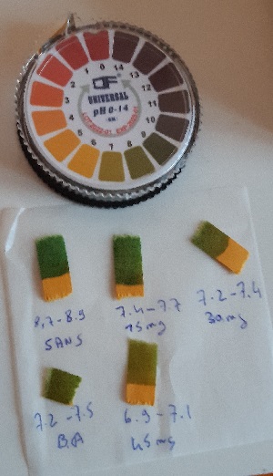 Petit récapitulatif des mesures du Ph sur les étapes mais avec du papier Ph: