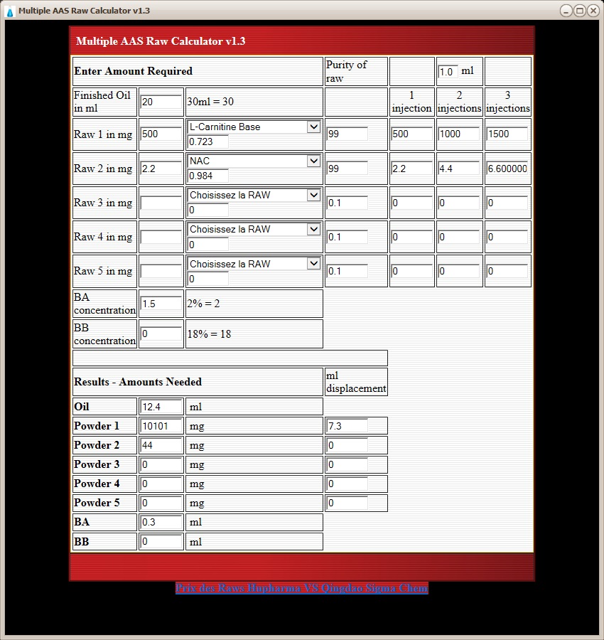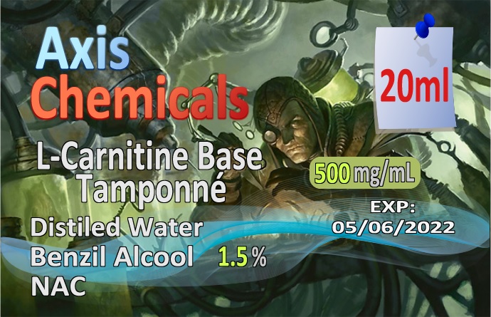 La recette: 1.5% B.A - NAC 2.2mg/mL Raw: L-CarBase 10.101mg (10.1gr) + NAC 45mg B.A: 0.3 mL Eau distillée: 12.4 mL