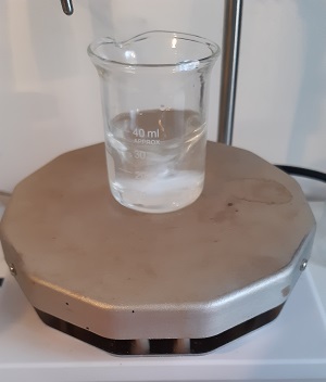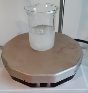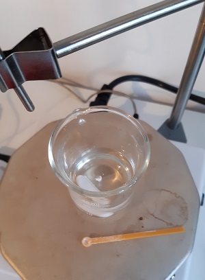 Etape 2: On rajoute l'eau distillée et on met en mélange fortement car c'est trouble donc pas en solution (MP)