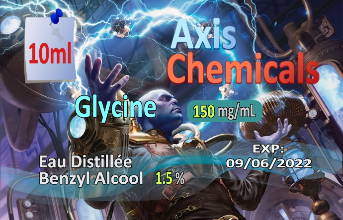La Glycine étant très faiblement acide, elle abaisse le Ph -0.6 pour 150mg/mL sur 10 ml Produit fini : 10 mL avec un Ph de 7.0 à 7.2 BA 1.5% => 0.15mL à prélever avec une seringue insuline Raw: 1515mg B2S: 70mg Eau distillée: 9mL